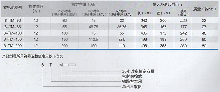 ●6-TM系列蓄电池型号、基本参数及外形尺寸